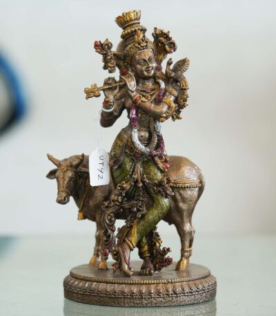 Veronese Design Krishna Playing Flute with Cow Statue