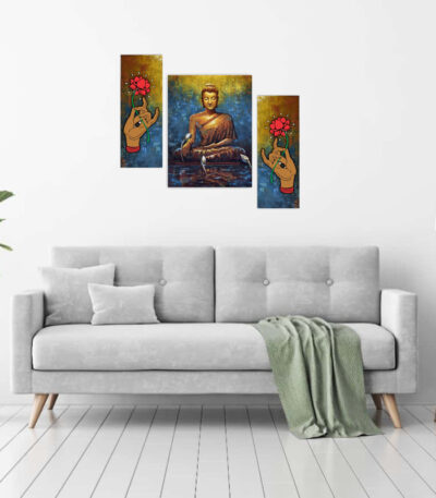 Buddha Set of Five 3D Framed Paintings for Wall Decoration - Ideal for Home, Living Room, and Bedroom (75 x 43 CM)
