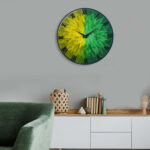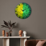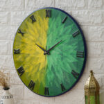 Exquisite Wooden Handmade Wall Clock Green With Yellow And Goldan Printed Acrylic Wall Clock for Home & Office Decorative Big Size Clock (16 Inch)