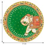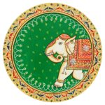 A stunning pichwai showcasing a beautifully decorated elephant. The intricate details and rich colors reflect the traditional artistry of pichwai painting. This piece is sure to be a conversation starter and a treasured addition to any collection.